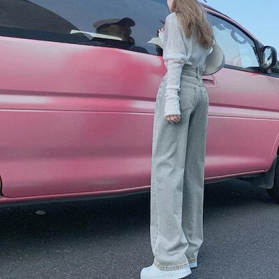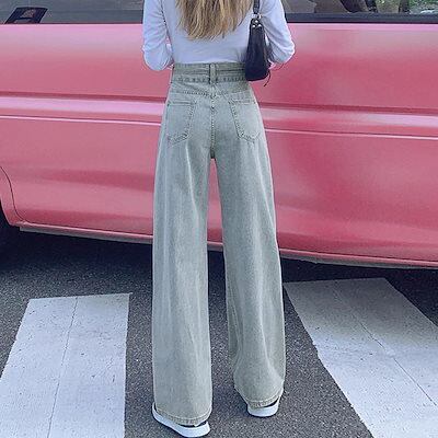脚長効果!デニムパンツ ストレート セミワイドパンツ ファッション