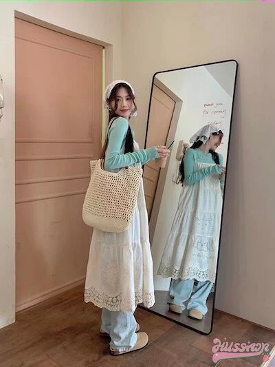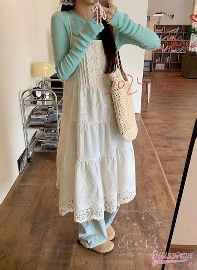24ワンピース ミディアム丈 ジャンパースカート ジャンスカ ノースリーブ キャミソール Aライン レース 透かし彫り 白 ホワイト 韓国ファッション レディース おしゃれ かわいい ガー | geeegood