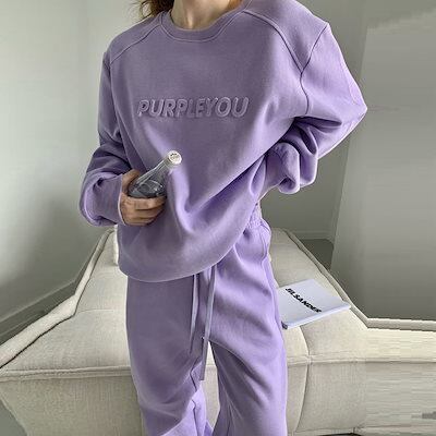 2025新作 シンプル スウエット 裏起毛 セットアップ レディース レディースファッション Tシャツ トップス ワイドパンツ 二点セット 大きめサイズ