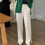 ワイドパンツ イージーパンツ レディース 秋冬 パンツ スリット ガウチョパンツ 無地 裾スリット ズボン ウエストゴム 大きいサイズ きれいめ ストレートパンツ ボトムス ゆったり ロング ワイ | geeegood