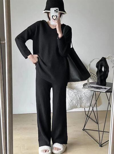 新作 シンプル 気質 レディースセットアップ ニット トップス ワイドパンツ 二点セット 着痩せ セット 二点セット 大きめサイズ