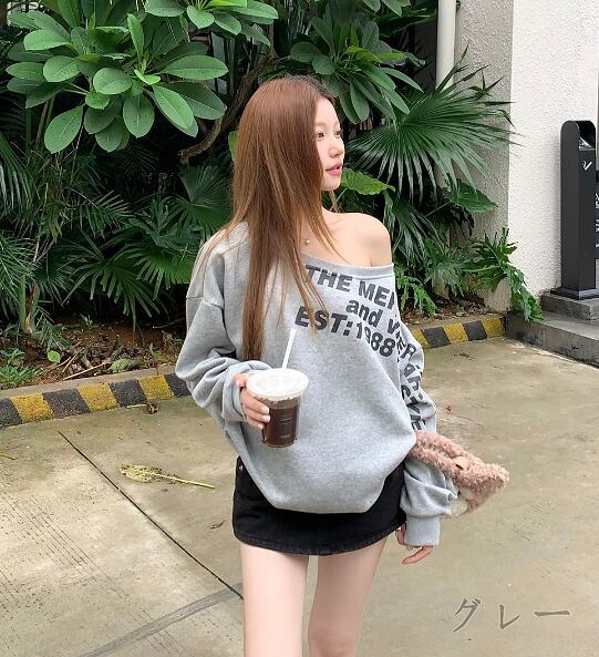 スウェット トレーナー 長袖 切り替え 体型カバー 着痩せ LOGO ロゴ 英字 シンプル カジュアル