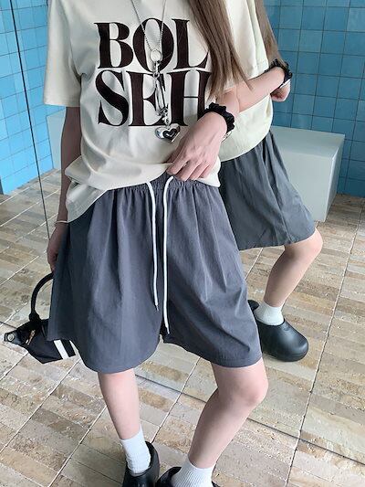 2024 春夏パンツ ハーフパンツ ワイド ストレート ウエストゴム ハイウエスト 美脚効果 脚長効果 細見え 夏 水色 黒 白 おしゃれ かわいい 韓国ファッション レディース お出かけ | geeegood