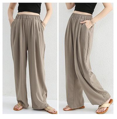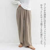 タックワイドパンツ 夏 爽やか テーパードパンツ レディース パンツ 薄手 ボトムス ウエストゴム ゆったり 軽い ひんやり ワイドパンツ 涼しい ズボン カジュアル 通勤 オフィス 普段着 体型カバ | geeegood