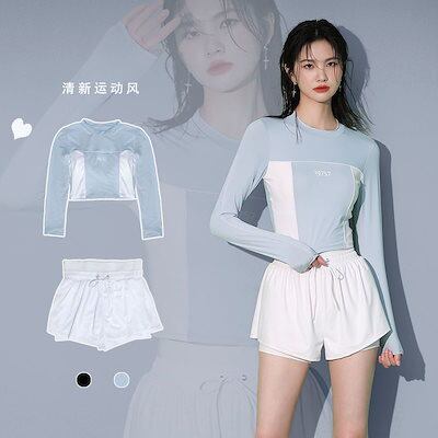 【3日以内出荷】水着 ワンピースフィットネス 競泳 スポーツ水着夏の女子学生は控えめに腹部を隠して痩せて見える2023新型平角ハイウエスト温泉長袖 レディース体型カバー大きいサイズ 韓国ファッション | geeegood