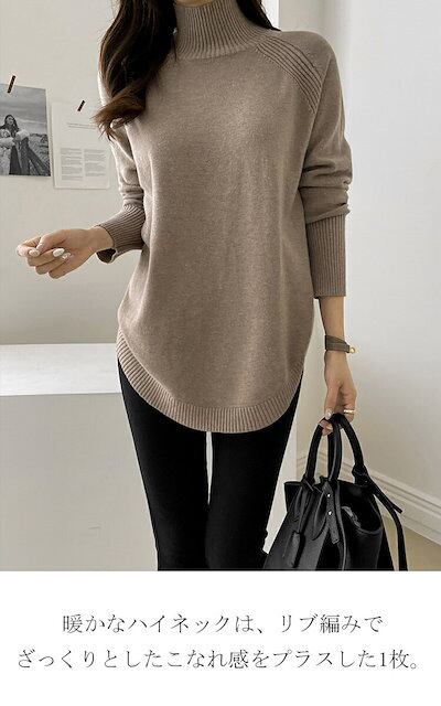 ラウンドヘム ハイネック ニット 長袖 セーター タートルネック レディース 秋冬 トップス ニットセーター スリット入り ハイゲージ チュニック ニットソー 秋 冬 リブニット 柔らかい ポンチョ | geeegood