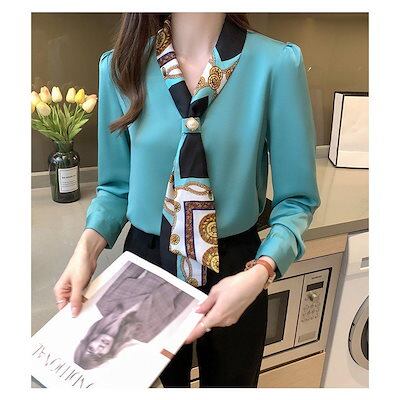 ブラウス レディース きれいめ 40代 シャツブラウス 春夏新作 オシャレブラウス シルク風シャツ 七分袖トップス リボン vネック 大人 通勤 ゆったり 30代