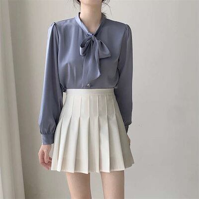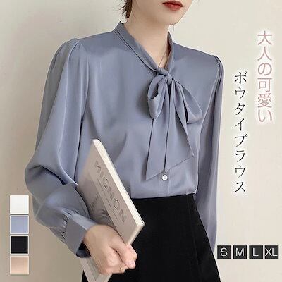 ブラウス シャツ レディース トップス ボウタイ リボン とろみシャツ 春 夏 秋 上品 長袖ブラウス インナー プルオーバー オフィス カジュアル きれいめ シフォン ボウタイブラウス フォーマル | geeegood