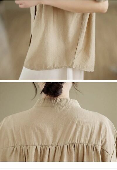 チュニック シャツ ブラウス レディース ロングシャツ 半袖 半袖シャツ 夏 トップス 羽織り ゆったり バルーンスリーブ 無地 綿 前開き uネック 春 大きいサイズ フレア シンプル ロングシャツ | geeegood