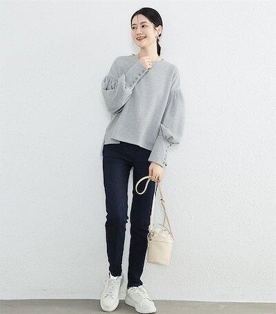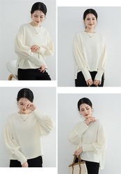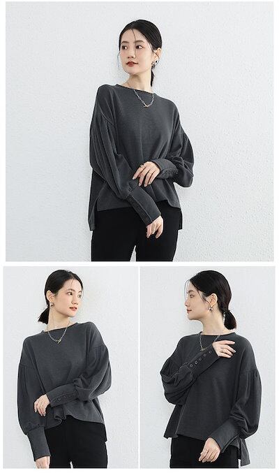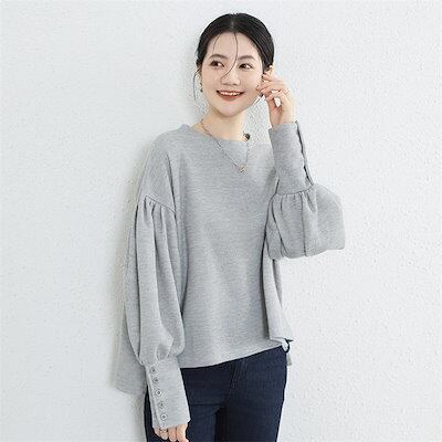 ぽわん袖 スウェット レディース おしゃれ トレーナー 秋 春 ゆったり プルオーバー 春秋 トップス パーカー 長袖 クルーネック パフスリーブ 無地 裾 スリット 前後差 カジュアル トップス t | geeegood