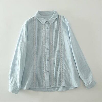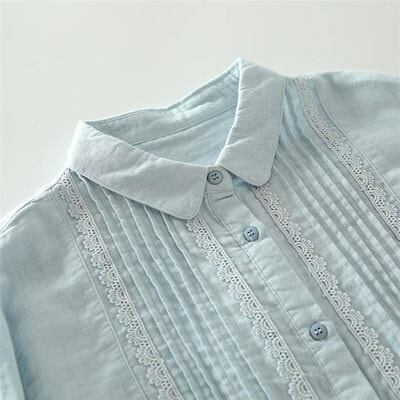 コットン シャツブラウス レディース ガーゼ シャツ 長袖 トップス レース ピンタック ダブルガーゼ カジュアル 2重ガーゼ 大きいサイズ ゆったり 体型カバー 通勤 秋 冬 春 シンプル 上品 着 | geeegood
