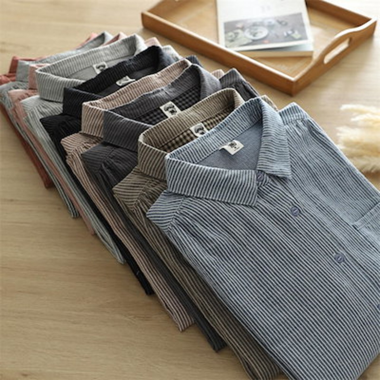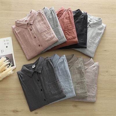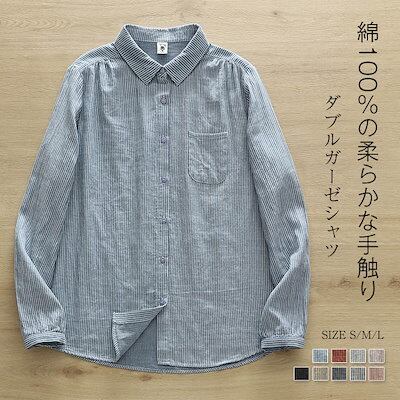 ガーゼ シャツ ダブルガーゼ 綿 秋 春 ストライプ シャツブラウス レディース ブラウス 長袖 ガーゼシャツ トップス ガーゼコットン 羽織り シャツジャケット カジュアル ナチュラル 2重ガーゼ | geeegood
