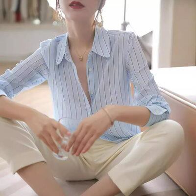 シャツ レディース おしゃれ 長袖 秋 春 夏 シャツブラウス きれいめ シャツ ブラウス トップス おしゃれ ファッション オフィス ビジネス カジュアル ストライプ 体型カバー 通勤 大きいサイ | geeegood