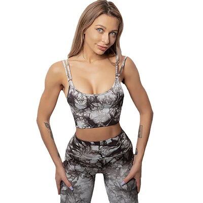 2枚購入で 2oo円FF!フィットネスウェア シームレス ヨガウェア セット ストレッチ 下着 ブラジャー ハイウエスト ヨガパンツ ロングパンツ タイダイ レディース