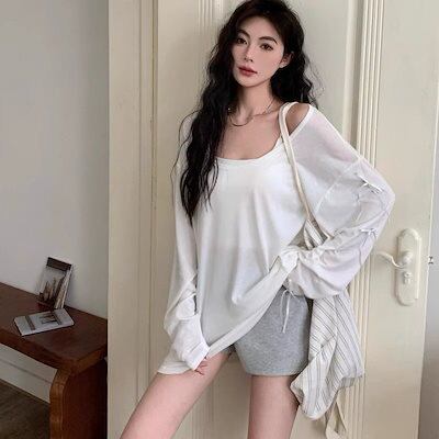 レディース Tシャツ ティーシャツ 韓国ファッション アウター 上着 夏秋 tシャツ 長袖 トップス 韓国 ファッション系 カットソーインナーショート フィット T レディース カジュアル き | geeegood