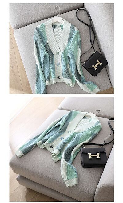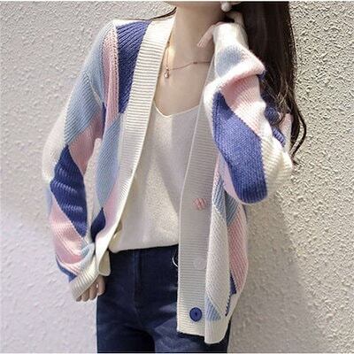 ニットカーディガン レディース 秋新作 配色 ニットソー セーター 幾何柄 通勤 コーディガン オシャレ 40代 大人 上品 可愛い 着痩せ トップス ゆったり アウター ニットソー おしゃれ 秋服 | geeegood