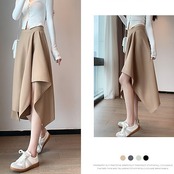 ハーフスカート イレギュラー半身スカート女性ハイウエストレトロスタイルロング薄型プリーツスカートサブ新セクション