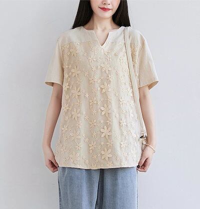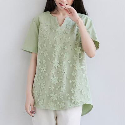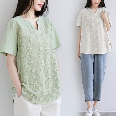 人気 夏 tシャツ おしゃれ ゆったり シンプル 半袖 レース Tシャツ トップス 着痩せ 百掛け チュニック のプレゼント ノースリーブ ロンt Tシャツカットソー オフィス スポーツ | geeegood