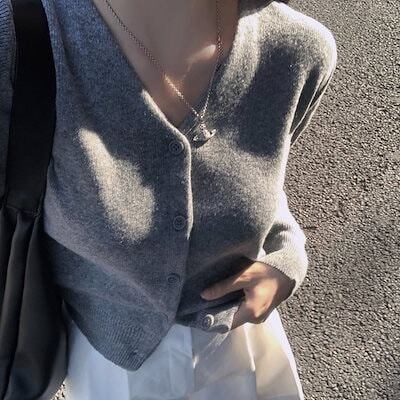 [韓国] ティオ ベーシック ブイネック ニット カーディガン - cd