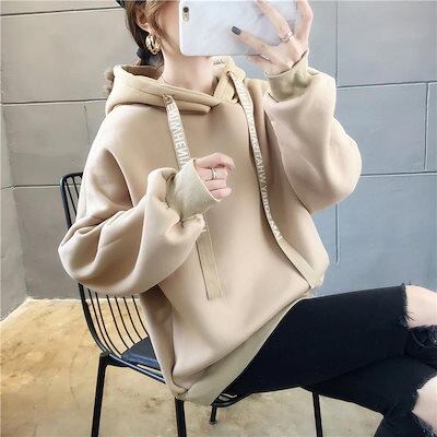 スウェット パ一力一トレンドはビッグロゴ 秋スウェット冬韓国ファッション パーカー レディース 裹起毛ゆったり百掛けトップス