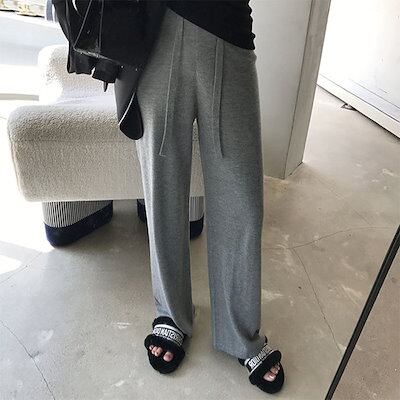 6色 リブ パンツ 秋 秋冬 ウエストゴム プリーツパンツ レディース 冬 ストレートパンツ ニットパンツ リブニット ワイドパンツ リブパンツ リブニットパンツ 大きいサイズ