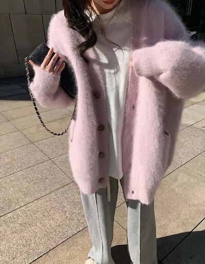 ニット カーディガン 大きいサイズ 秋 冬 オーバーサイズ ニット カーデ レディース シャギー シャギーニット ふわふわ 羽織り 前開き きれいめ カジュアル ゆったり 毛足長め もこもこ 長袖 | geeegood