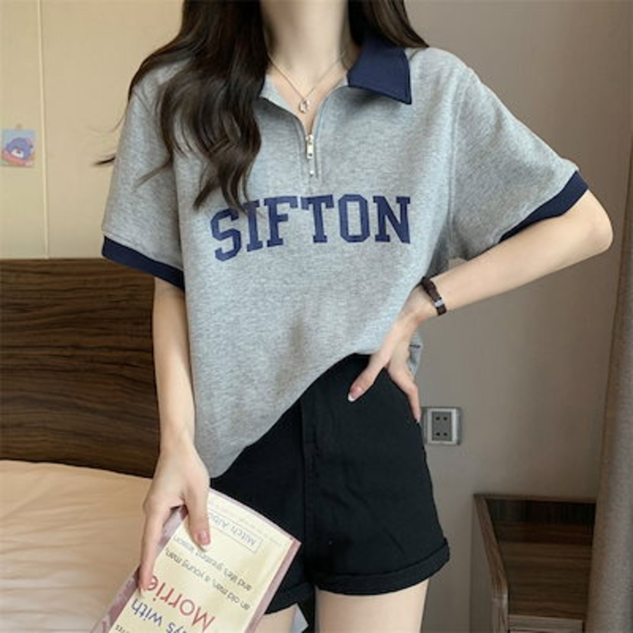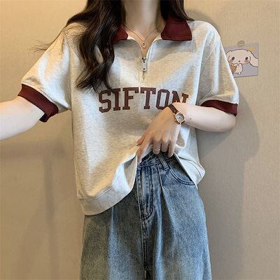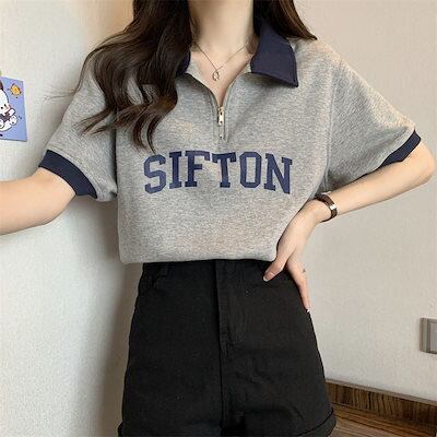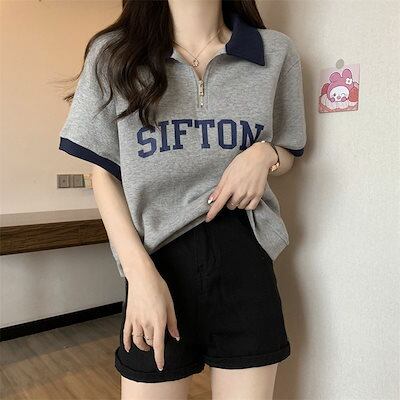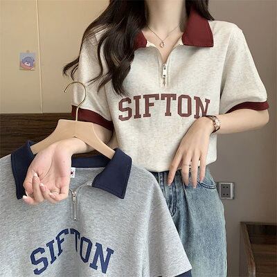 tシャツ 半袖 レディース 韓国ファッション tシャツ 半袖 レディース Tシャツ 半袖 純綿 トップス ファスナートップス デザイン ニッチデザイン 新作 開襟母の日