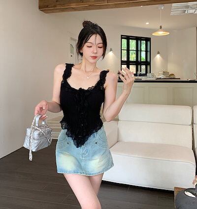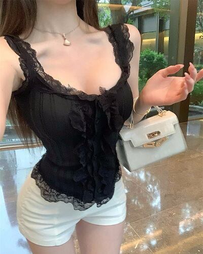 ニットキャミソール インナートップ トップス キャミソール ショート丈 ノースリーブ レース 伸縮性 サマーニット きれいめ 大人 上品 おしゃれ お洒落 セクシー 春 夏 レディース デート | geeegood