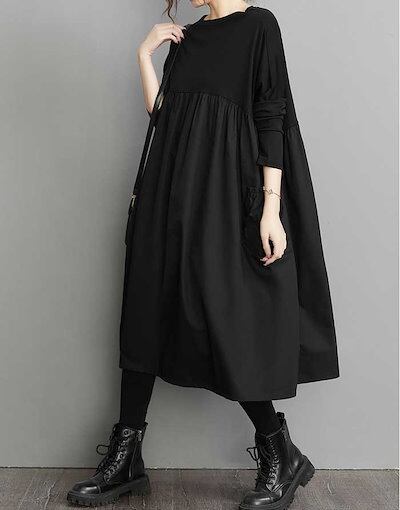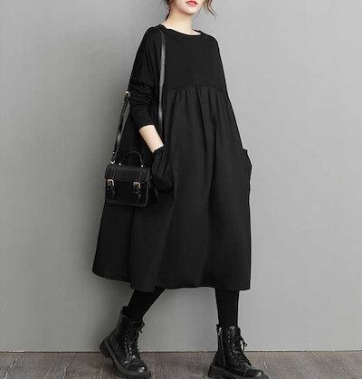 フレアワンピース aラインワンピース 長袖 秋 春 ワンピース レディース カジュアル aライン フレア ワンピース ギャザー ハイウエスト 体型カバー ゆったり 切り替え ドッキング ワンピース 大 | geeegood