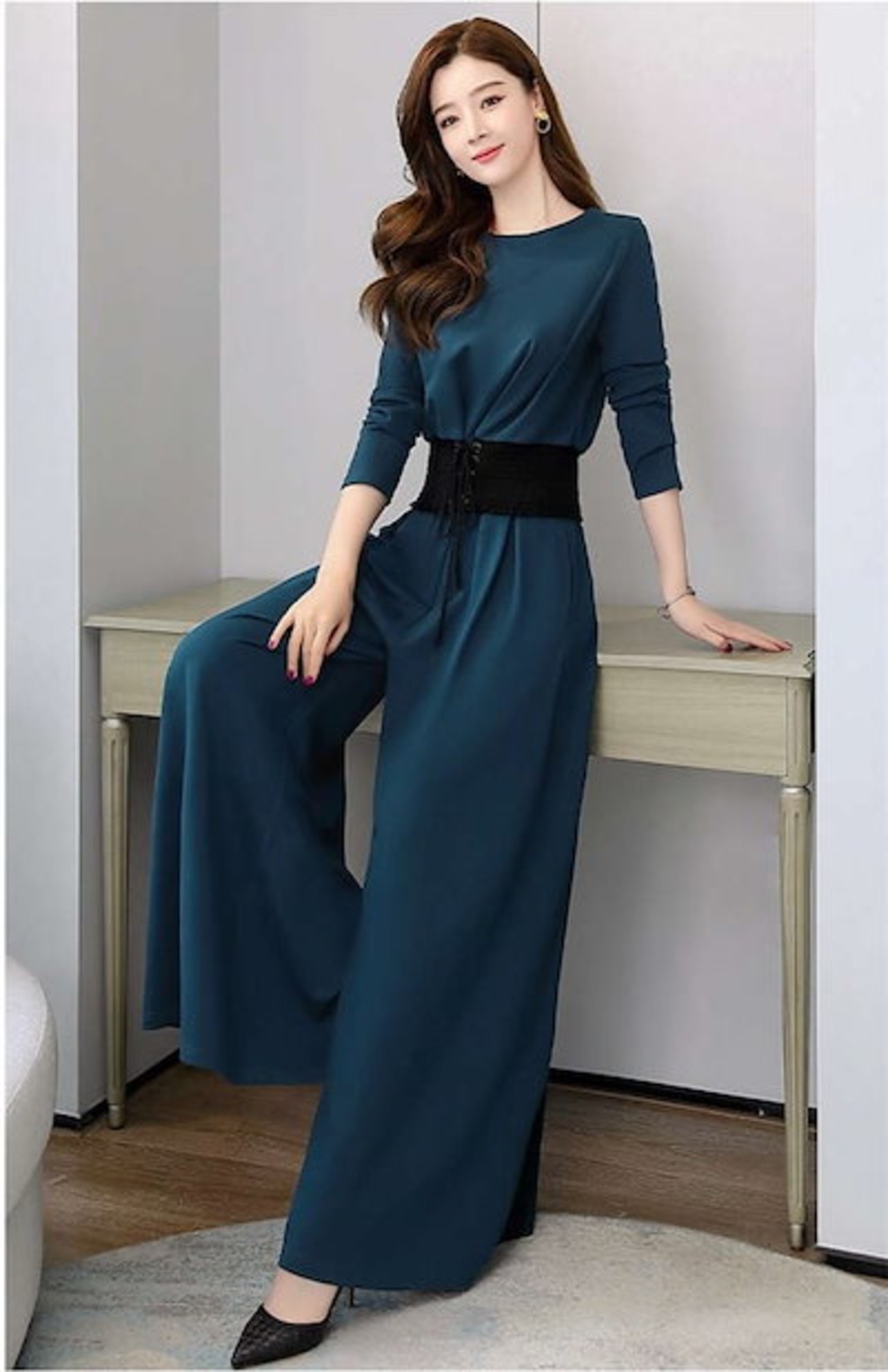 セットアップ レディース 上下セット ブラウス 2点セット パンツスーツ ワイドパンツ レディース ウエストゴム ガウチョパンツ フレアパンツ ロングパンツ マキシ丈 スカンツ トップス 長袖 パンツ | geeegood