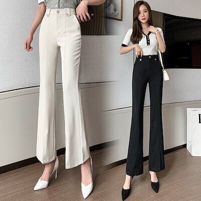 スラックスパンツ レディース 九分丈 通勤 黒スラックス ラッパズボン スリット ボトムス 大きいサ