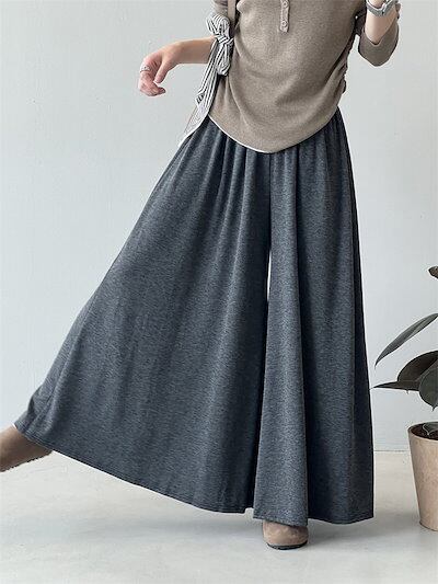 ワイドパンツ 秋 ガウチョパンツ スカート見える レディース フレアパンツ 柔らか ロングパンツ ウエストゴム バギーパンツ 大きいサイズ ゆったり リラックス 着心地よい ルームウェア オシャレ ふ | geeegood