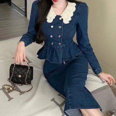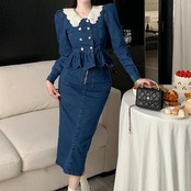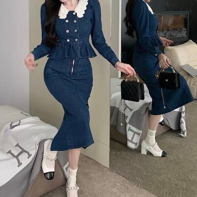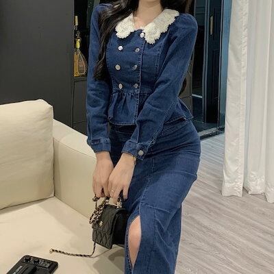2024春夏 2点セット 長袖シャツ レディース かわいいトップススカートラウンドネックパンツボトムスシルエット風きれいめサイズ秋冬スタイルゆったりファッション襟フレンチカジュアルお出かけ大人可愛い | geeegood