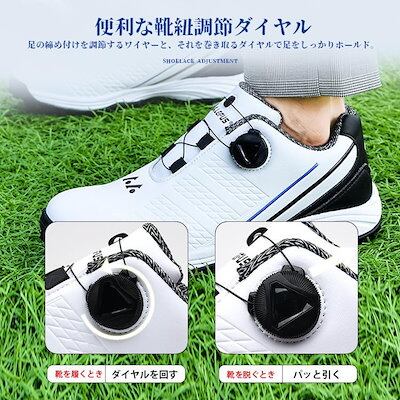 ゴルフシューズ メンズ レディース ダイヤル式 スニーカー 大きいサイズ 幅広い スパイクレス フィット感 軽量 動きやすい 防水 耐久 練習場 白 黒 おすすめ
