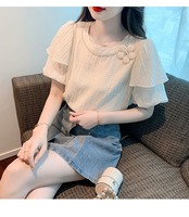 初回送料無料 夏レディースファッション カジュアル 半袖tシャツ シフォン バブル袖 トップス