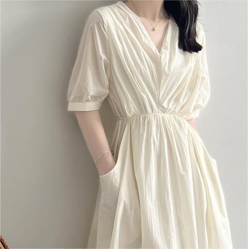 u22118 レディース ワンピース  通勤 Aライン 半袖 上品  無地 エレガンス 韓国風