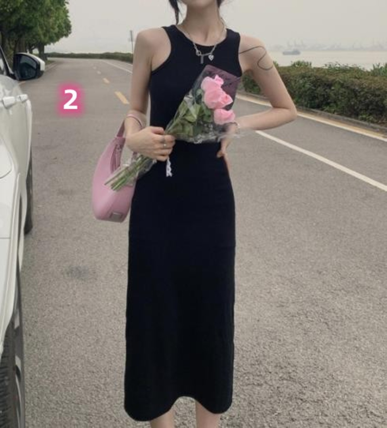 2023春夏新作 女 レディース ハイウエスト 袖なし 吊りスカート ロング ワンピース タイトスカート